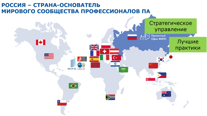Представители Проектного офиса ФИПС – Фёдор Батанов и Валерий Ена – входят в состав мирового сообщества профессионалов патентной аналитики (IPACoP, группа «Лучшие практики»), а руководитель научного направления «Патентная аналитика» Олег Ена – в группу «Стратегическое управление и регулирование» (Governance), определяющую мировую повестку развития патентной аналитики.
