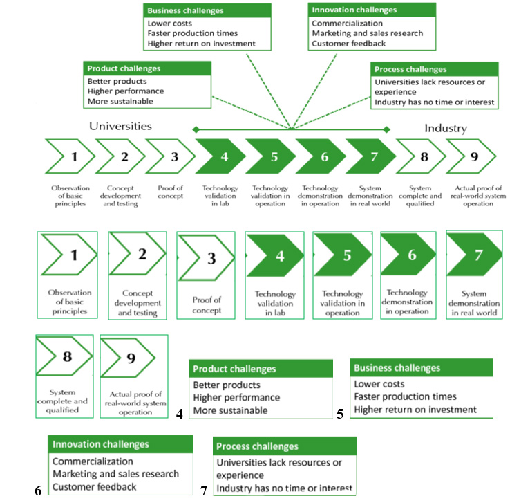 Уровни технологической готовности оценивают зрелость технологии на этапах ее концептуализации, разработки и применения по шкале от одного до девяти. Один балл — самый низкий уровень, а девять — самый высокий.