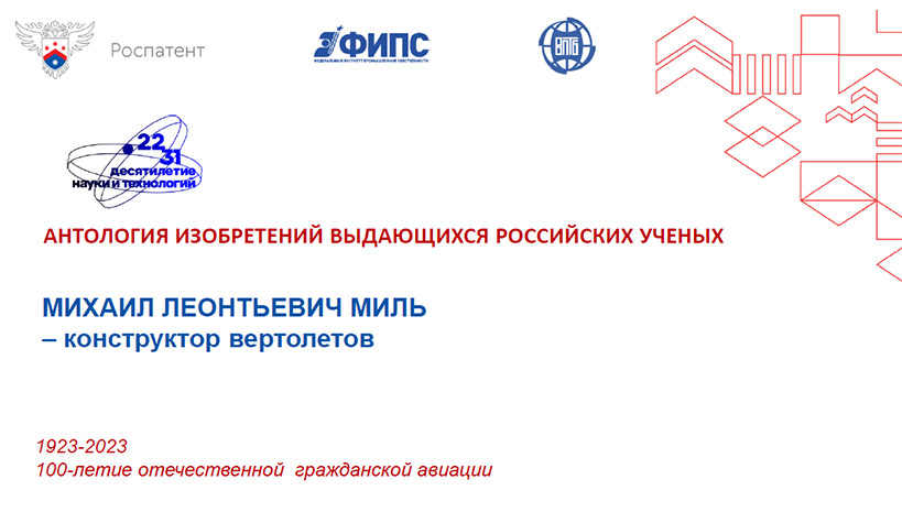 К 100-летию гражданской авиации России Центр ВПТБ ФИПС представляет материал «Михаил Леонтьевич Миль – конструктор вертолетов» из серии «Антология изобретений выдающихся российских ученых»