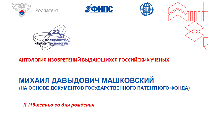 К 115-летию учёного, одного из основоположников российской фармакологии, выдающегося специалиста в области создания, классификации и описания лекарственных средств и фармакотерапии Михаила Давыдовича Машковского, ВПТБ ФИПС подготовлен очередной выпуск «Антологии изобретений выдающихся российских ученых»