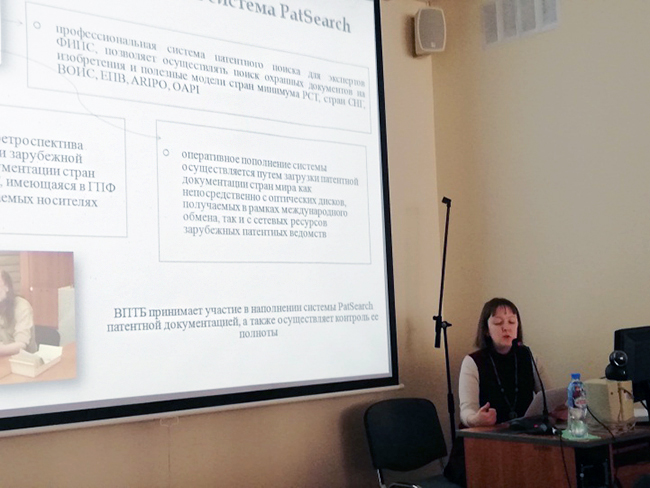 В рамках мероприятия А.А. Ломакина выступила с докладом «Информационные услуги и продукты ФИПС для научно-исследовательского сообщества». После выступления А.А. Ломакина и Е.В. Устюгова ответили на многочисленные вопросы участников. Также сотрудники ВПТБ ФИПС ознакомились с передовыми практиками работы ведущих библиотек и приняли участие в дискуссии, касавшейся терминологии библиотечно-информационных услуг в ГОСТе, разрабатываемом Фундаментальной библиотекой ИНИОН РАН.