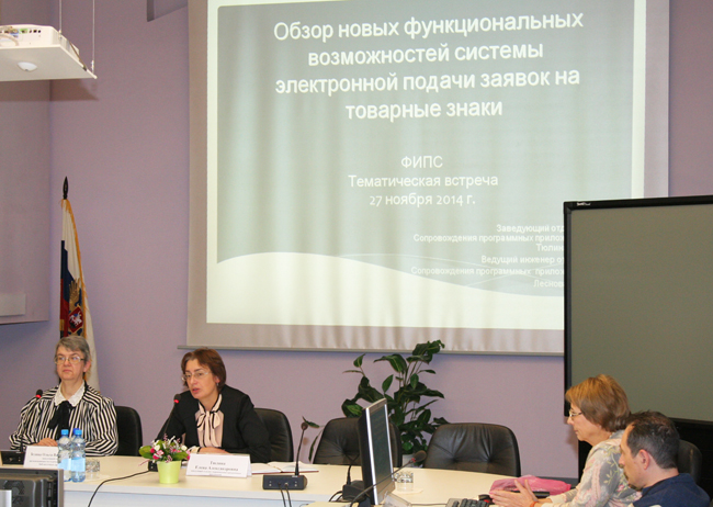 27 ноября 2014 г. в Отделении ВПТБ состоялась тематическая встреча «Обзор новых функциональных возможностей системы электронной подачи заявок на товарные знаки».