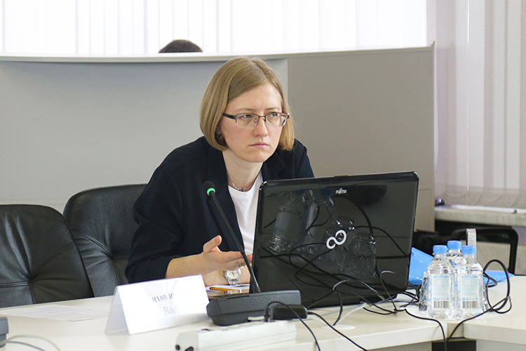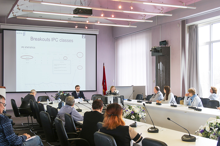 С докладом по теме встречи выступила заместитель заведующего отделом развития информационных ресурсов, классификационных систем и стандартов в области интеллектуальной собственности ФИПС Ольга Тихомирова.