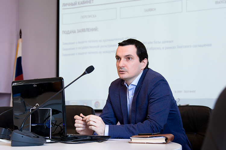 С докладом выступил заведующий отделом проектирования портальных решений ФИПС Илья Кононенко. Он представил участникам встречи подробный алгоритм электронной подачи заявок на промышленные образцы, программы для ЭВМ и базы данных через сайт ФИПС, а также рассказал об использовании Единого портала государственных и муниципальных услуг (функций) для электронной подачи заявлений по услугам Роспатента.