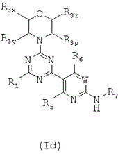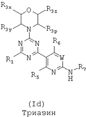 Более конкретно, в одном из аспектов настоящего изобретения предложены триазиновые соединения формул от (Ia) до (Id), пиримидиновые соединения формул от (If) до (Ii) и пиридиновые соединения формул (Ie) и от (If) до (Ii):