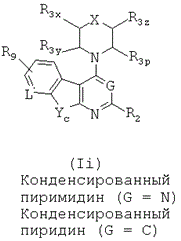 Термины «соединение согласно настоящему изобретению» и «соединения согласно данному изобретению» и «соединения формулы (I) или одной из формул от (Ia) до (Ii)» включают соединения формулы (I) или одной из формул от (Ia) до (Ii) и их стереоизомерам, геометрическим изомерам, таутомерам, сольватам, метаболитам, N-оксидным производным и фармацевтически приемлемым солям и пролекарствам. Термин «млекопитающее» включает, но не ограничивается только ими, людей, мышей, крыс, морских свинок, обезьян, собак, кошек, лошадей, коров, свиней и овец.