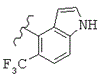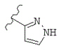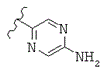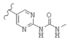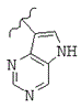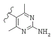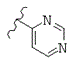 где волнистая линия показывает место присоединения триазинового кольца, и