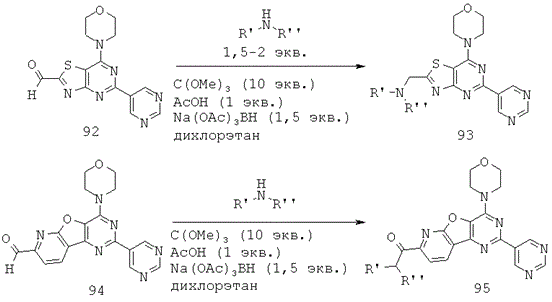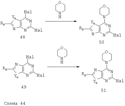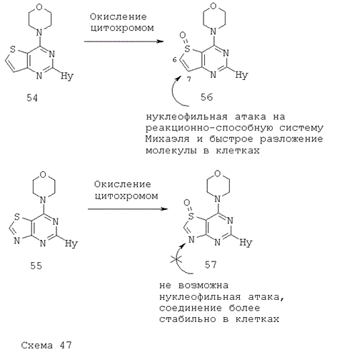 По сравнению с ингибиторами PI3K, описанными Zenyaku Kogyo (WO 02088112 (ЕР 1389617), WO 2005095389 (ЕР 1741714), WO 2006095906 (ЕР 1864665), WO 09905138 (ЕР 1020462)], AstraZeneca (WO 07066103, WO 07080382, WO 08023159, WO 08023180, WO 08032027, WO 08032033, WO 08032036, WO 08032041, WO 08032072, WO 08032077, WO 08032086, WO 08032089, WO 08032091), Piramed/Genentech (US 2007009880, WO 07127183, WO 08073785, WO 07042810, WO 07122410, WO 07127175, WO 08070740, WO 2006046031, WO 2006046040, WO 2007122410), Yamanouchi/Piramed (WO 01083456) и Novartis (WO 07084786, WO 08098058), ингибиторы согласно настоящему изобретению отличаются включением атома N в основное гетероциклическое кольцо, что обеспечивает лучшую биологическую активность относительно целевого фермента, и/или включением нового молекулярного фрагмента, делающего молекулу в целом более активной или более селективной к соответствующему ферменту.