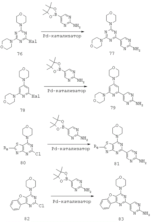 4. Соединение по п.1, выбранное из 5-(4,6-диморфолино-1,3,5-триазин-2-ил)-4-(трифторметил)пиридин-2-амина и 5-(4,6-диморфолино-1,3,5-триазин-2-ил)-4-(трифторметил)пиримидин-2-амина.