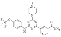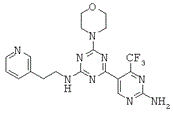 Известны некоторые соединения триазина, обладающие активностью, ингибирующей PI3 киназу, и ингибирующие рост раковых клеток [WO 02088112 (ЕР1389617), «HETEROCYCLIC COMPOUNDS AND ANTITUMOR AGENT CONTAINING THE SAME AS ACTIVE INGREDIENT», Kawashima et al., Дата подачи заявки: 26.04.2002; WO 05095389 (ЕР1741714). «HETEROCYCLIC COMPOUND AND ANTI-MALIGNANT-TUMOR AGENT CONTAINING THE SAME AS ACTIVE INGREDIENT», Kawashima et al., Дата подачи заявки: 30.03.2005; WO 06095906 (ЕР1864665), «IMMUNOSUPPRESSIVE AGENT AND ANTI-TUMOR AGENT COMPRISING HETEROCYCLIC COMPOUND AS ACTIVE INGREDIENTS», Haruta et al., Дата подачи заявки: 11.03.2005; WO 09905138 (ЕР1020462), HETEROCYCLIC COMPOUNDS AND ANTITUMOR AGENT CONTAINING THE SAME AS ACTIVE INGREDIENT, Kawashima et al., Дата подачи заявки: 24.07.1998]. Триазиновое соединение ZSTK474, разработанное в исследовательских лабораториях Zenyaku Kogyo, представляет собой первое, вводимое перорально, триазиновое соединение, обладающее высокой активностью против PI3K, которое проявляло сильную противораковую активность против ксенотрансплантатов человеческого рака у мышей без проявлений критической токсичности [Yaguchi et al., Journal of The National Cancer Institute, 98:545-556, (2006)]. ZSTK474 представляет собой конкурирующий с АТР ингибитор изоформ фосфатидилинозитол 3-киназы I класса [Kong et al., Cancer Sci, 98:1638-1642 (2007)].