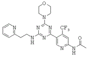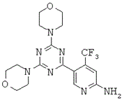 - 5-(4,6-диморфолино-1,3,5-триазин-2-ил)-4-(трифторметил)пиридин-2-амина,