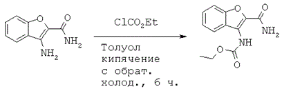 Этил 2-карбамоилбспзофуран-3-илкарбамат (114 мг, 0,460 ммоль, 1,0 экв.) в 5% растворе NaOH (3,7 мл, 4,60 ммоль, 10,0 экв.) и EtOH (2,2 мл) кипятили с обратным холодильником в течение 1 часа. После охлаждения смеси до комнатной температуры продукт осаждали при помощи добавления HCl (конц., 37%) и твердое вещество собирали при помощи фильтрования и промывали водой и Et2O. Полученное соединение (40 мг, 43%) применяли на следующей стадии без дополнительной очистки.