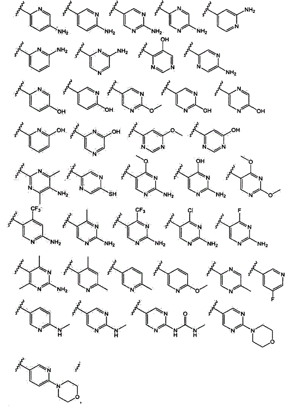 где указанная моноциклическая гетероарильная группа является незамещенной или дополнительно замещенной одной или более группами, выбранными из F, -NH2, -NHCH3, -N(CH3)2, -ОН, -ОСН3, -С(O)СН3, -NHC(O)CH3, -N(C(O)CH3)2, -NHC(O)NH2, -CO2H, -СНО, -СН2ОН, -C(=O)NHCH3, -C(=O)NH2, и -СН3;