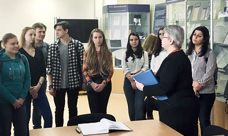 Встреча началась с экскурсии по Всероссийской патентно-технической библиотеке и музею Роспатента, где студенты смогли ознакомиться и с его постоянной экспозицией, и тематической выставкой «Нет преград человеческой мысли». Экскурсию провела главный библиограф Ольга Зезина. Она рассказала об истории библиотеки и зарождении патентного права в России.