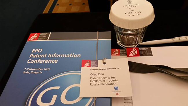 Во вторник, 7 ноября 2017 года, в городе София (Болгария) открылась ежегодная Конференция Европейского патентного ведомства по патентной информации. Среди участников конференции – советник директора, руководитель проектного офиса Федерального института промышленной собственности Олег Ена и руководитель центра перспективных технологий Николай Попов.