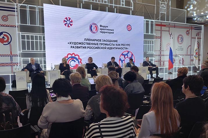 Во второй день форума представители отрасли НХП, эксперты в сфере охраны интеллектуальной собственности, представители профильных органов исполнительной власти приняли участие в сессии «Экономика народных художественных промыслов: монетизация, способы защиты интеллектуальной собственности и другие современные инструменты развития». Главный государственный эксперт по интеллектуальной собственности Федерального института промышленной собственности (ФИПС) Ирина Самохвалова рассказала о регистрации НХП в качестве географических указаний (ГУ) и наименований мест происхождения товаров (НМПТ). Она представила примеры зарегистрированных российских НМПТ и ГУ в отношении НХП, статистику таких регистраций и преимущества.