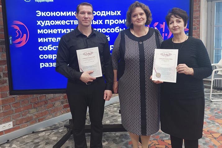 В завершении сессии представитель ФИПС вручила свидетельства об исключительном праве на ГУ «Полховско-майданская роспись» МБУК «Вознесенский районный Центр народных ремесел» и об исключительном праве на НМПТ «Шахунское ткачество» ООО «Тканые узоры». Обе организации производят уникальную продукцию народных ремесел, зародившихся на территории Нижегородской области.