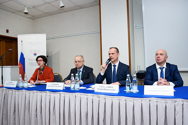 С приветственным словом к участникам конференции обратились заместитель руководителя Роспатента Андрей Солонович, председатель МГО ВОИР Дмитрий Зезюлин.
