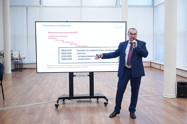 Начальник Центра физики и прикладной механики ФИПС Михаил Сальников в своем докладе «Однозвенная и многозвенная формулы, зонтичные патенты. Подбор аналогов и прототипов: работа в российских и зарубежных базах» рассказал о тонкостях составления формулы при патентовании разных объектов или групп решений, раскрыл возможности патентования максимального количества вариаций, что может стать препятствием для конкурентов в патентовании решений в определенной узкой сфере. Спикер поделился методами профессионального патентного поиска, подбора аналогов и прототипов в российских базах, а также в зарубежных с опорой на иерархическую систему международной патентной классификации (МПК).
