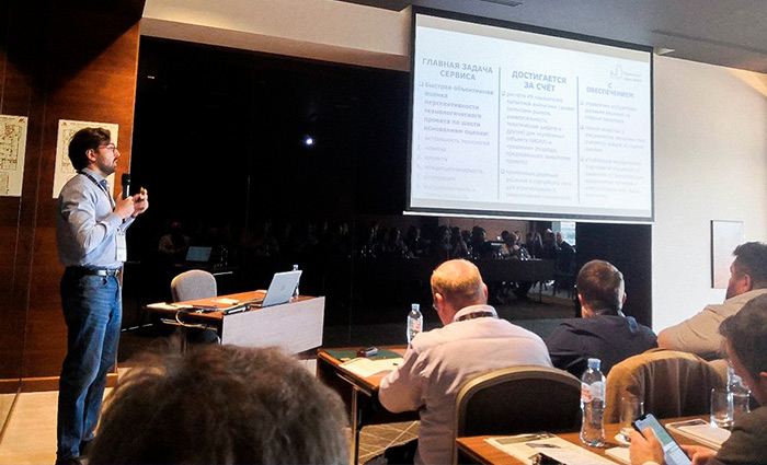Валерий Ена руководит командой аналитиков и разработчиков, занимающихся проведением этого эксперимента, которое знаменует принципиально новое направление деятельности Проектного офиса ФИПС. Выступление вызвало ряд вопросов и комментариев аудитории по возможному улучшению представленного решения.