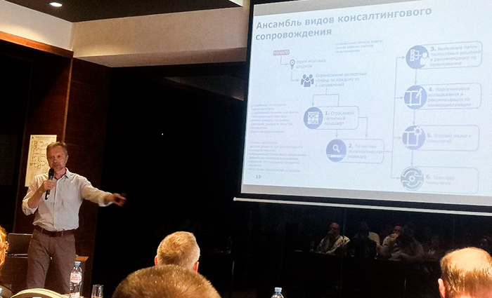 Валерий Ена выступил на первом дне программы, где рассказал о новых возможностях оценки крупных технологических проектов с помощью применения алгоритмов интеллектуального анализа данных. Задача отбора перспективных проектов при формировании программ НИОКР весьма актуальна как для крупных корпораций, так и различных научных фондов, особенно в условиях поступления множества инициативных проектных заявок.