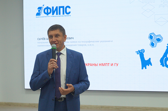 Заместитель начальника Центра по взаимодействию с органами власти ФИПС Денис Савченко и начальник отдела экспертизы заявок на НМПТ и ГУ ФИПС Алексей Сычёв рассказали слушателям о преимуществах от использования ГУ и НМПТ для предприятий, о мировом опыте использования и трендах развития этих объектов интеллектуальной собственности. А также о том, как правильно подать заявку на регистрацию ГУ и НМПТ, оплатить пошлины и получить льготы на их оплату. Производителям это дает возможность отличать свою продукцию от конкурентов, успешно продвигать товар на рынке, увеличивать объемы, расширять и развивать производства. К тому же наличие исключительного права позволяет правообладателю защищать свои права на использование ГУ и НМПТ и пресекать выпуск контрафактной продукции. В свою очередь, потребители получают уверенность в качестве товара, что ведет к повышению доверия к производителю и готовность платить за маркируемый ГУ и НМПТ.