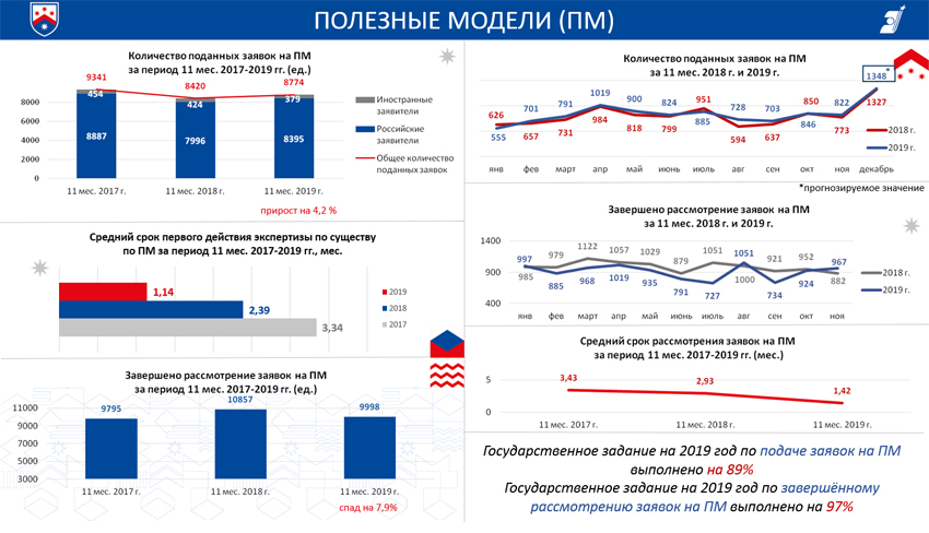 Предлагаем ознакомиться с отчетом по подаче и рассмотрению заявок на полезные модели за 11 месяцев 2019 года.