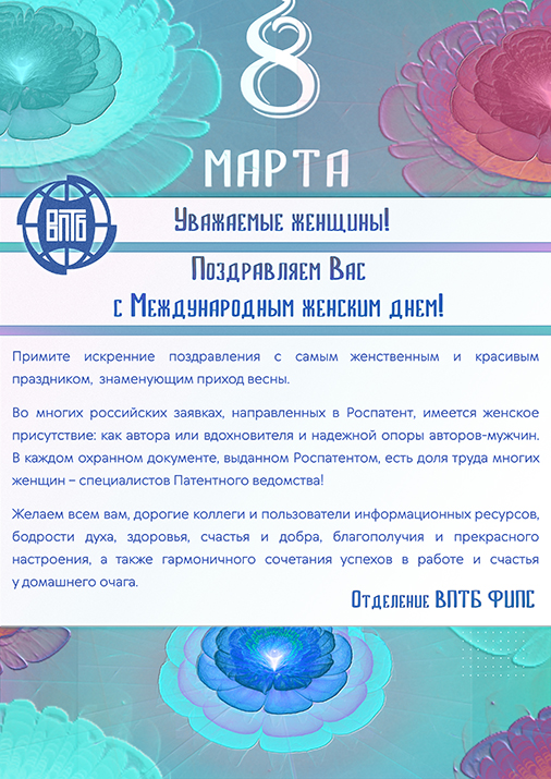 Поздравление отделения ВПТБ ФИПС с Международным женским днём 8 марта