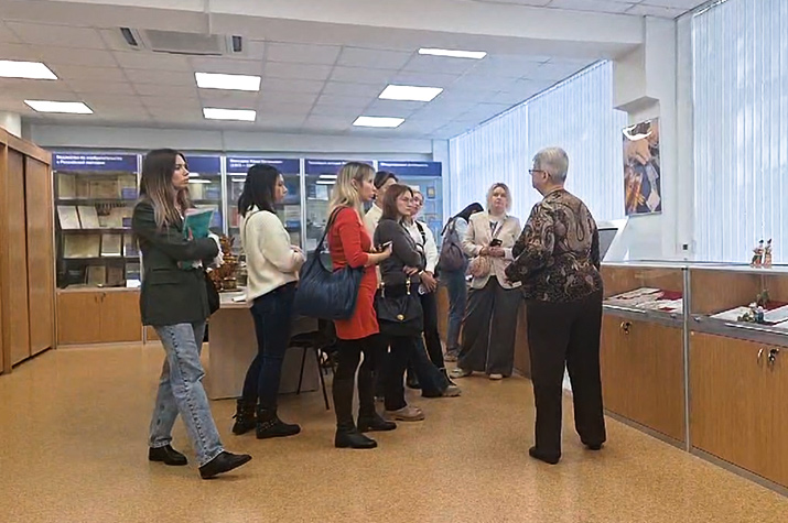 Для участников встречи Ольга Зезина, главный библиограф ВПТБ, провела экскурсии по выставкам - постоянно действующей экспозиции «Региональные бренды России», а также недавно открывшейся выставке «Изобретательская энергия Российской академии наук. К 300-летию РАН».