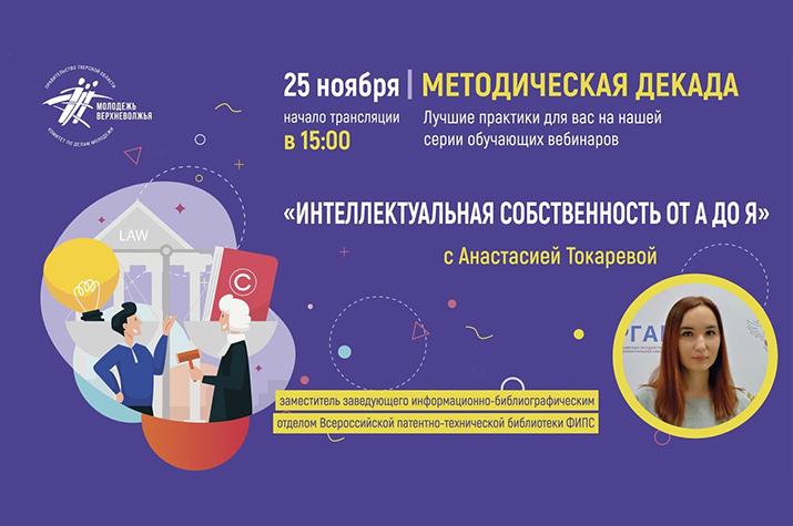 25 ноября заместитель заведующего информационно-библиографическим отделом ВПТБ ФИПС Анастасия Токарева провела вебинар «Интеллектуальная собственность от А до Я» в рамках Недели правовой грамотности для молодежи в г. Твери. В докладе были освещены темы правовой культуры, истории и современных тенденций в сфере промышленной собственности, представлены объекты интеллектуальной собственности, их правовая охрана, деятельность Всемирной организации интеллектуальной собственности и Роспатента, а также были приведены примеры успешного использования результатов интеллектуальной деятельности в нашей стране и за рубежом.