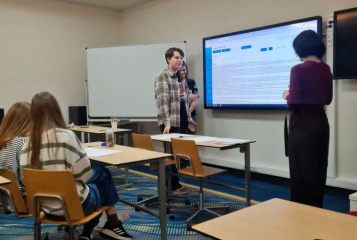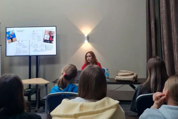 Заместитель начальника Центра ВПТБ Анастасия Токарева рассказала об истории и современности интеллектуальной собственности, познакомила с преимуществами патентной информации, представила описания к изобретениям, авторами которых являются российские школьники. Начальник отдела проектирования информационно-поисковых систем ФИПС Дмитрий Золкин продемонстрировал поисковые возможности информационной системы Поисковая платформа Роспатента: осуществление поиска патентных документов по различным параметрам, поиск товарных знаков по изображению. Совместно со школьниками были произведены поиски патентных документов по направлению их проектной деятельности.