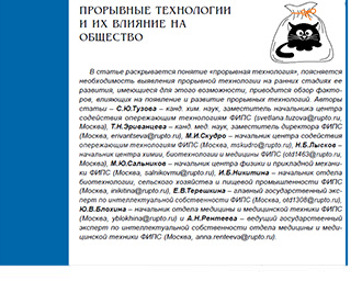 В статье раскрывается понятие «прорывная технология», поясняется необходимость выявления прорывной технологии на ранних стадиях ее развития, имеющиеся для этого возможности, приводится обзор факторов, влияющих на появление и развитие прорывных технологий.