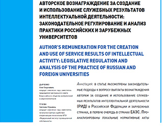 Авторское вознаграждение за создание и использование служебных результатов интеллектуальной деятельности: законодательное регулирование и анализ практики российских и зарубежных университетов
